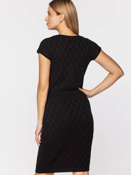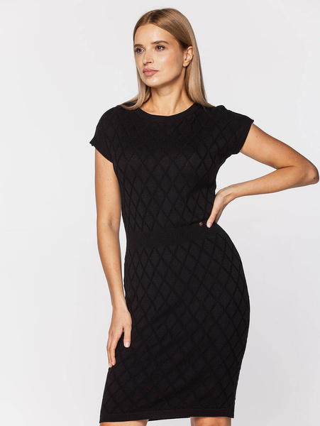 Uosobienie elegancji i kobiecości.Odcinana w talii specjalnym prążkowym splotem, wzmocnionym elastyczną lycrą podkreśli figurę klepsydry.