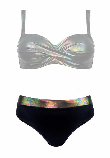 Model FD111 to damskie figi kąpielowe o klasycznym, ponadczasowym, sprawdzonym kroju i podwyższonym stanie, który idealnie dopasowuje się do sylwetki. Ozdobę stanowi, mieniący się kolorami pas, który dodatkowo zapewnia lepsze trzymanie na biodrach i nieco spłaszcza okolice pod pępkiem, wysmuklając okolice brzucha. Perfekcyjnie zaprojektowane o anatomicznym kroju, gwarantują prawdziwy komfort noszenia. Majtki plażowe posiadają szersze boki i pełny tył.
