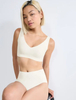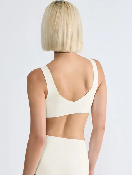 • Dekolt wycięty w kształcie litery V, dzięki czemu braletka kształtem przypomina tradycyjny biustonosz.