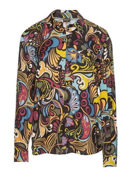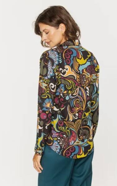 Intensywna kolorystyka nadaje koszuli charakteru, stanowiąc mocny akcent w każdej stylizacji. Doskonale komponuje się zarówno z eleganckimi spodniami, jak i casualowymi dżinsami, oferując szeroki wachlarz możliwości tworzenia modnych zestawów. Modelka o wzroście 175 cm nosi rozmiar 36, a koszula perfekcyjnie układa się na sylwetce, dodając jej lekkości i elegancji.