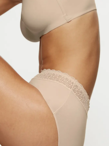 - Pasek w talii wykończony koronką pochodzącą z recyklingu