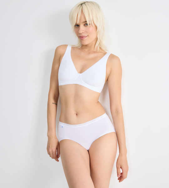 Sloggi Figi Basic Midi białe Klasyczne bawełniane majtki damskie z podwyższonym stanem. Wygodna bielizna z kolekcji sloggi Basic na co dzień z wysokiej jakości połączenia bawełny z lycrą dopasowuje się do każdego Twojego ruchu i zapewnia najwyższy komfort noszenia. Basic Midi o sportowym kroju jest jak druga skóra i dodatkowo optymalnie dopasowuje się w taki sposób, że pochlebia każdej figurze. ☑️ Klasyczny krój z wysoką talią i szerszymi bokami ☑️ Miękkie, płaskie krawędzie zapewniające idealne dopasowanie i wygodę ☑️ Wyjątkowo miękkie szwy nie odznaczają się pod dopasowanym ubraniem ☑️ Wygodny, niezwykle miękki dżersej o wysokiej zawartości bawełny OEKO-TEX® STANDARD 100, 23821 OETI Skład: 95% Bawełna, 5% Elastan