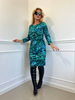 Dzięki wyrazistemu wzorowi, sukienka ta doskonale komponuje się z minimalistycznymi dodatkami, takimi jak czarne botki, szpilki czy subtelna biżuteria, podkreślając jej unikalny charakter.