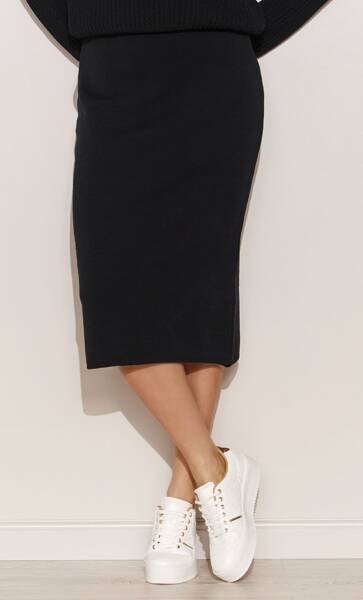 Dzianinowa czarna spódnica midi to elegancki i jednocześnie wygodny element, idealny na wiele okazji. Długość midi, która sięga głęboko do połowy łydki, oraz miękkiej, elastycznej dzianinie, taka spódnica świetnie łączy komfort z wyrafinowaniem.