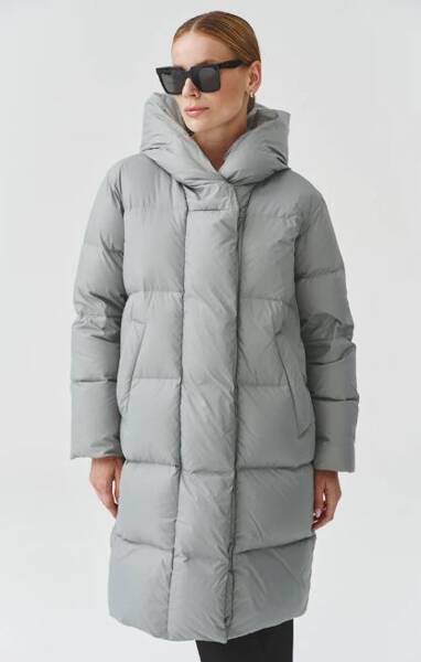 Kurtka średniej długości zapinana na dwukierunkowy suwak. Duży otulający, szalowy kaptur. Model niezwykle kobiecy. Mankiety zakończone ściągaczami podnoszą komfort użytkowania.