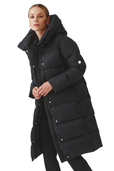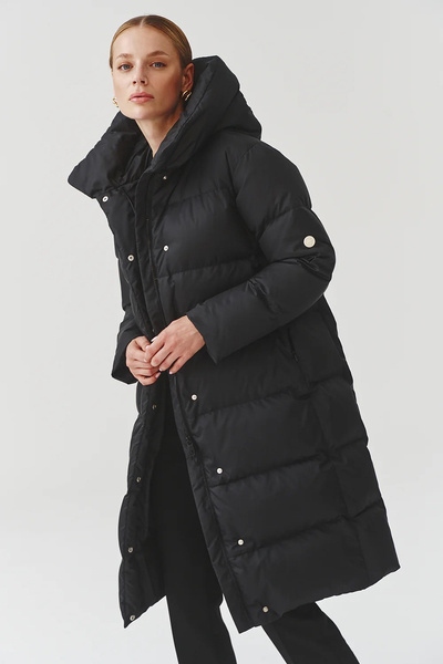 Kurtka średniej długości zapinana na dwukierunkowy suwak. Duża otulająca stójka.