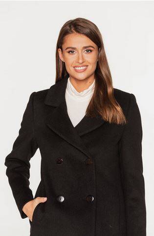 Klasyczny, dopasowany płaszcz zimowy marki Passero z kołnierzem i klapami, wykonany z mieszanki alpaki i wełny, idealnie podkreśla talię. Zapinany dwurzędowo na guziki, z bocznymi kieszeniami i rozporkiem z tyłu. Ocieplany, o długości przed kolano, wykończony podszewką. Elegancki i funkcjonalny wybór na chłodne dni.