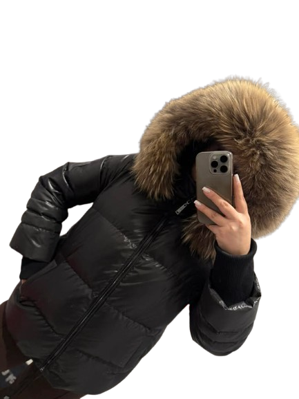 Damska, krótka kurtka puchowa w kolorze CZARNY. Wykonana z tkaniny poliestrowej o delikatnym połysku. . kaptur wykończony futrem naturalnym, który nadaje charakteru modelowi. Wszystkie elementy są odpinane. Ponadto dolny rant kurtki zakończony ściągaczem z troczkami. Wysoka stójka chroniąca przed zimnem. Model zapinany na suwak, z dwoma wpuszczanymi kieszeniami. Lekki, luźny oraz swobodny fason. Pikowanie potęguje efekt miękkości oraz otulenia. Uniwersalny, ponadczasowy fason z dużym sukcesem sprawdzi się w strojach typu casual.
