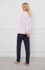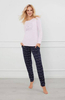 Piżama o prostej linii. W bluzie okrągły dekolt i ozdobny nadruk. Spodnie z kieszeniami.