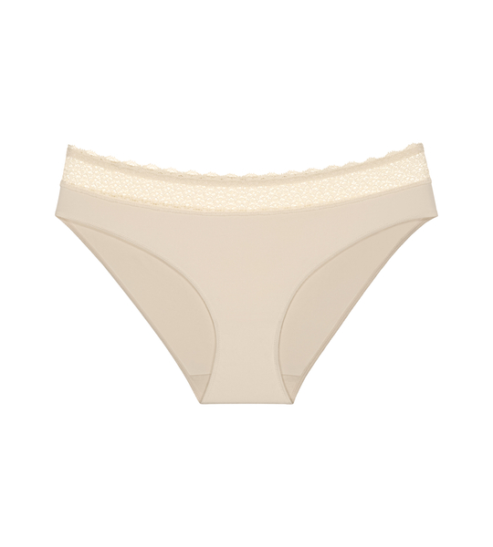 Koniec z niepokojącymi szwami odznaczającymi się na ubraniu. Ciesz się całkowitym komfortem i pewnością dzięki miękkim i gładkim majtkom z modalu. Majtki typu tai ze średnim stanem Miękka włóknista tkanina Lenzing Modal® jest delikatna w kontakcie ze skórą. Pasek w talii wykończony koronką pochodzącą z recyklingu. Wstawka z bawełny organicznej 87% Modal , 13% Elastan