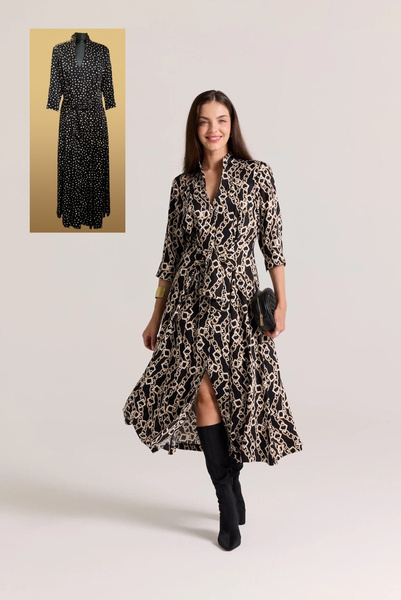 SUKIENKA CZARNA W BEŻOWE GROSZKI