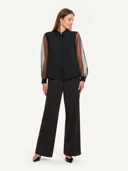 ⋅ Materiał: główna część bluzki wykonana z lekkiego materiału, rękawy z transparentnej organzy