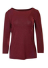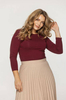 Bordowa bluzka w prostym fasonie to must have w każdej szafie, szczególnie w modnych odcieniach czerwonego wina. Wykonana z elastycznej dzianiny (95% wiskoza, 5% elastan), zapewnia wygodę i komfort przez cały dzień. Jej klasyczny, lekko dopasowany krój z dekoltem w łódkę i rękawami ⅞ sprawia, że bluzka pasuje do wielu różnych stylizacji – zarówno codziennych, jak i bardziej eleganckich. Gładka, bez nadruków, stanowi świetne uzupełnienie zarówno prostych, jak i bardziej złożonych zestawów. W chłodniejsze dni doskonale wygląda w połączeniu z marynarką, kardiganem lub długą kamizelką.