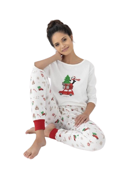 Piżama damska wykonana z wysokiej jakości delikatnej bawełny. Koszulka z rękawem 3/4, ozdobiona świątecznym nadrukiem.