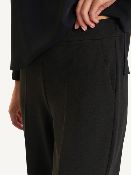 Klasyczne spodnie damskie wykonane z miękkiego i trwałego materiału, który idealnie dopasowuje się do sylwetki. Szerokie nogawki nadają nowoczesnego charakteru, a elastyczny pas zapewnia komfort noszenia przez cały dzień.