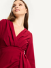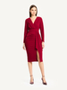 Elegancka sukienka o dopasowanym kroju, wykonana z elastycznej tkaniny, która podkreśla kobiecą sylwetkę. Dekolt w szpic z zakładkami dodaje szyku, a odcięcie w talii akcentuje linię bioder.