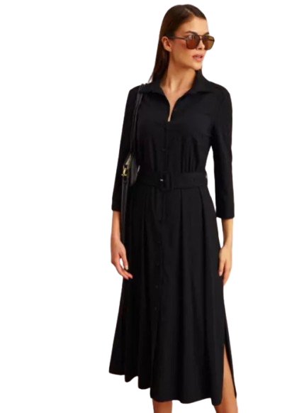 Czarna sukienka z mieszanki lnu i wiskozy to kwintesencja klasyki, którą możesz zabrać ze sobą wszędzie.