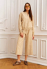 Bezowe szerokie spodnie z tkaniny żakardowej to połączenie modnego wyglądu z komfortem i stylem.