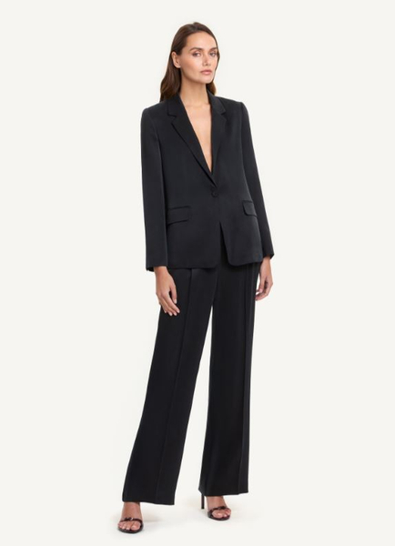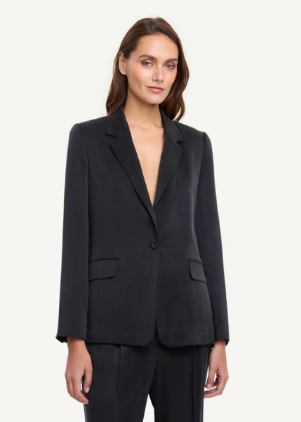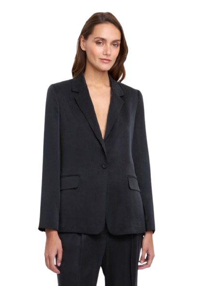 Głęboka czerń oraz luksusowy materiał sprawiają, że marynarka doskonale