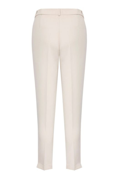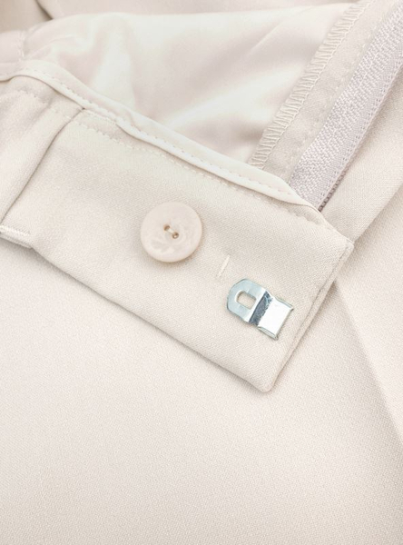 Delikatne rozcięcia na dole nogawek nadają im lekkości i nowoczesnego charakteru, a boczne, cięte kieszenie podkreślają funkcjonalność modelu. Idealne zarówno do formalnych stylizacji z marynarką, jak i do codziennych zestawień z lekką bluzką.