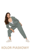 Spodnie stanowią część kompletu, ale świetnie komponują się również z innymi elementami garderoby – można je zestawić zarówno z dopasowanym topem, jak i luźniejszą bluzką czy sportową bluzą. To idealna propozycja dla kobiet szukających stylowego, a zarazem funkcjonalnego rozwiązania na każdą okazję.
