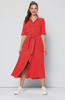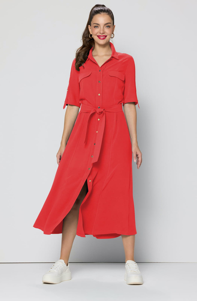 Model ma taliowany krój, który podkreśla figurę i dodaje elegancji. Krótki rękaw sprawia, że sukienka jest idealnym wyborem zarówno na cieplejsze dni, jak i w zestawieniu z marynarką lub swetrem. Guziki na całej długości dodają klasycznego charakteru, a intensywny czerwony kolor przyciąga uwagę i dodaje pewności siebie.