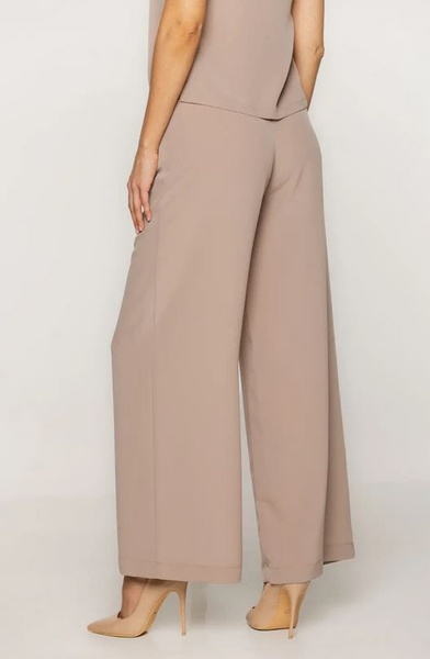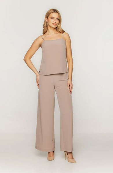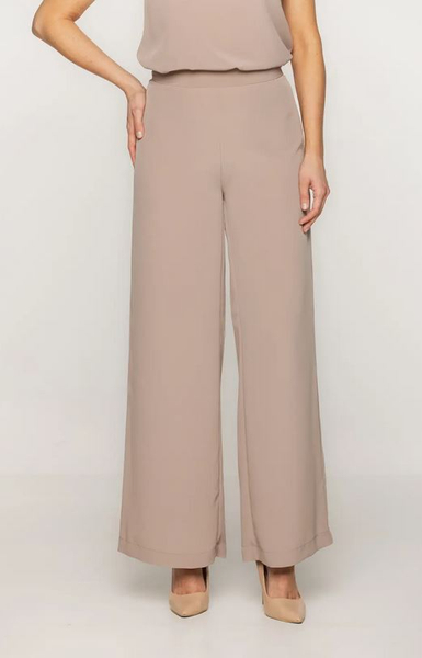 Lekkie, damskie spodnie wizytowe w odcieniu beżu to połączenie elegancji i komfortu. Uszyte z gładkiej tkaniny (100% poliester), posiadają prosty fason z luźnymi nogawkami, które swobodnie układają się na sylwetce. Zapięcie na kryty suwak z boku zapewnia estetyczne wykończenie i wygodę noszenia. Klasyczny, ponadczasowy krój sprawia, że spodnie świetnie sprawdzą się zarówno w codziennych, jak i bardziej formalnych stylizacjach – z prostym topem, koszulą czy wzorzystą bluzką.
