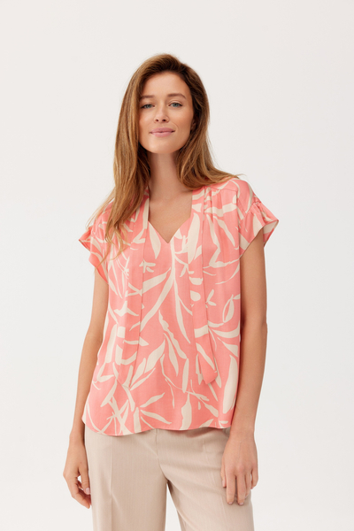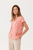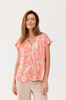 Wizytowa bluzka FERIA w koralowym kolorze. Wykonana z satynowanej