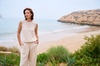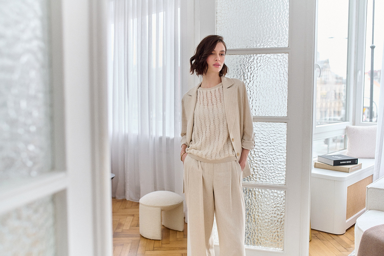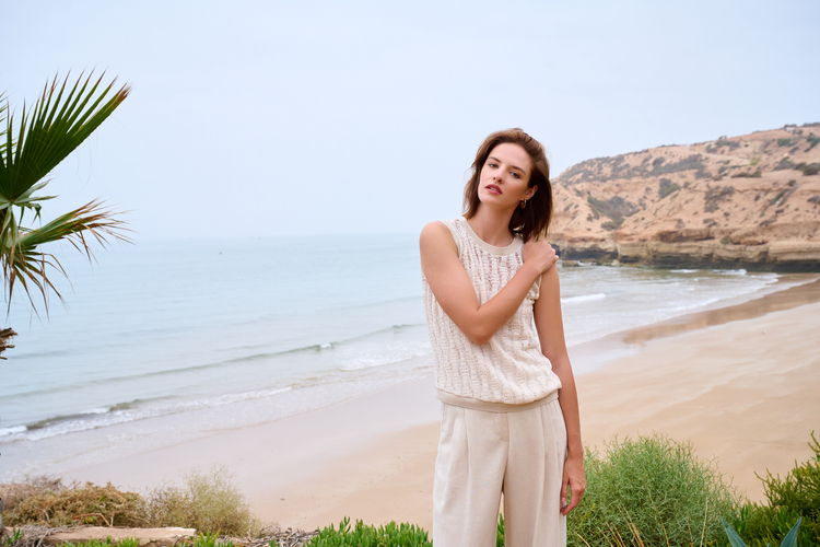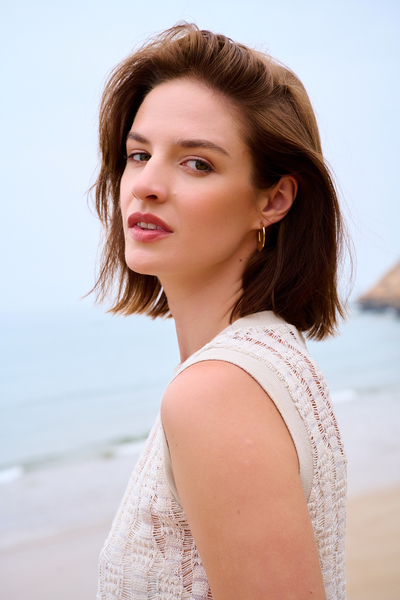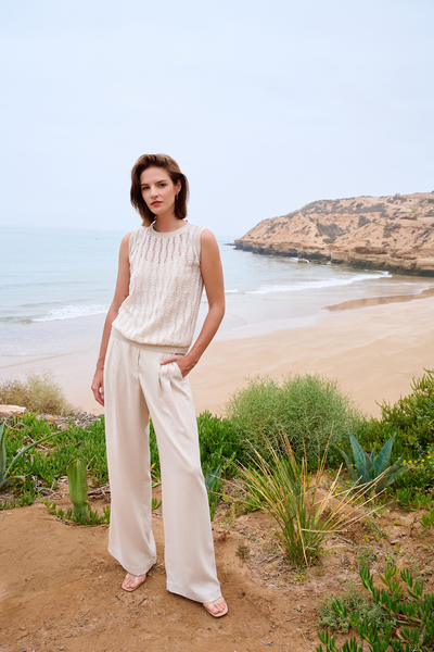 Wizytoowy top FERIA z dzianiny o ażurowym splocie. Wykonany z dzianiny bawełnianej.