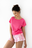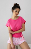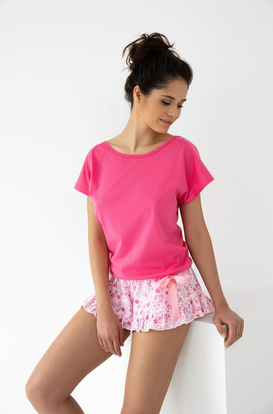 Piżama damska wykonana z wysokiej jakości bawełny. Koszulka z krótkim rękawem, dekolt okrągły.
