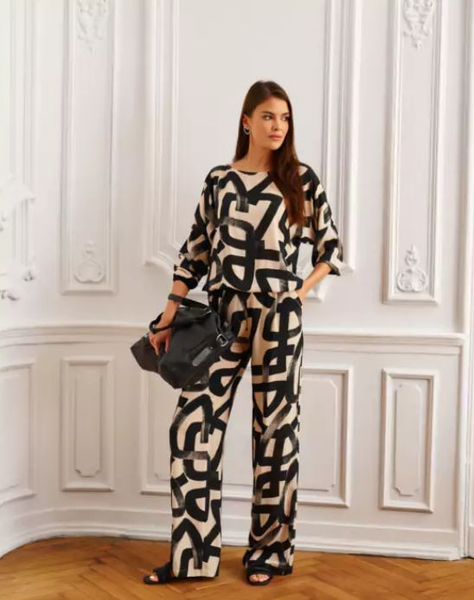 👖 Z szerokimi spodniami w tym samym princie – total look w nowoczesnym wydaniu.