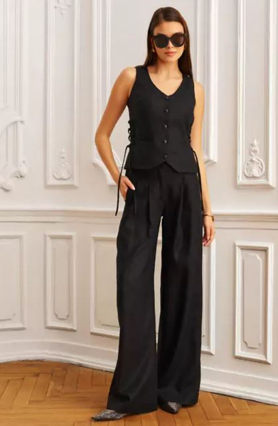 Ta czarna kamizelka z naturalnego lnu rami to propozycja dla kobiet, które cenią styl, jakość i wyrafinowany detal.
