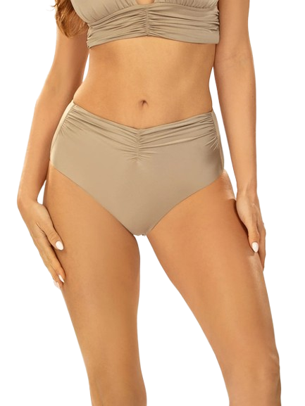 Model FD166/911S to wysokie figi kąpielowe w eleganckim, beżowym kolorze inspirowanym naturalnymi barwami pustyni, które idealnie komponują się z każdą karnacją. Stworzone z myślą o komforcie i stylu, podkreślają talię, modelują brzuch i subtelnie maskują drobne niedoskonałości, dodając pewności siebie w letnich stylizacjach.