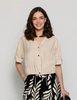 Krótka bluzka wiskozowa – beżowa elegancja z nutą wygody