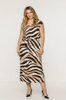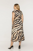 Sukienka w zwierzęcy wzór z troczkiem w talii i rozcięciami