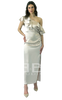 Najbardziej efektownym elementem są asymetrycznie ułożone falbany przy ramionach, które zmysłowo odsłaniają jedno ramię, dodając całości lekkości, kobiecości i niepowtarzalnego charakteru.