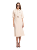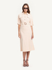 układa się na sylwetce, zapewniając komfort i kobiecy wygląd. Beżowy odcień
