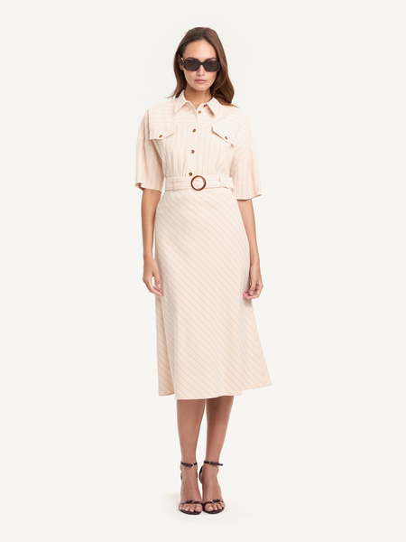 materiału w połączeniu z subtelnym wzorem w paski tworzy ponadczasową bazę do