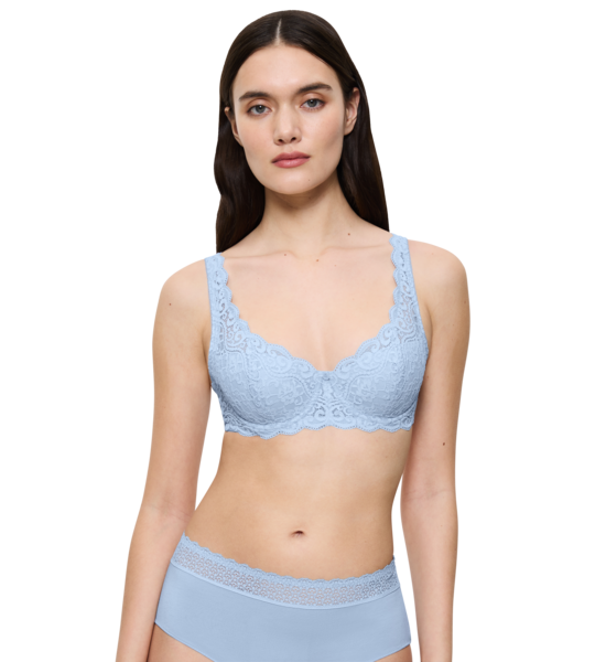 - Koronkowo zdobione miseczki zapewniają perfekcyjne dopasowanie i świetnie podtrzymują biust.