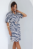 👗 Koszulowy fason z zapięciem na guziki nadaje całości eleganckiego charakteru, a ozdobny, elastyczny pasek z klamrą pięknie podkreśla talię i modeluje sylwetkę.