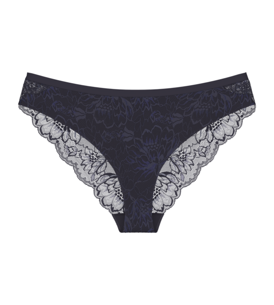 Majtki ozdobione koronką na całej powierzchni mają uwodzicielski wygląd, ale pozostają niewidoczne pod ubraniem. Wykonane z ekologicznej koronki.