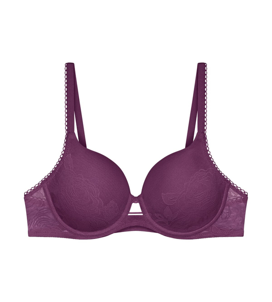Biustonosz z serii bielizny Shape Wild Rose Sensation od Triumph dzięki lekkim miseczkom Spacer Cup i koronce o średnich właściwościach modelujących oczarowuje nieskazitelną sylwetką i tworzy naturalnie piękny dekolt.