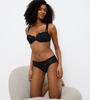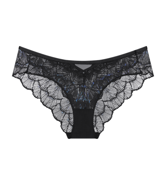 Model w klasycznym czarnym kolorze ma niższy stan i szersze boki, dzięki czemu jest wyjątkowo komfortowy na co dzień, a jednocześnie subtelnie podkreśla kształty. To doskonały wybór dla kobiet, które szukają bielizny łączącej elegancję i wygodę.