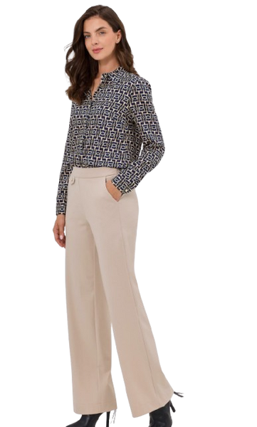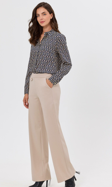 Stylowa koszula o klasycznym kroju, wykonana z lekkiej i przyjemnej w dotyku tkaniny. Charakteru dodaje jej geometryczny nadruk, który sprawdzi się zarówno w stylizacjach biurowych, jak i na co dzień. Model zapinany na guziki, z klasycznym kołnierzykiem i długim rękawem zakończonym mankietem. Występuje w dwóch wariantach kolorystycznych.
