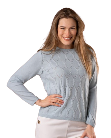 Ozdobny splot dodaje jej charakteru i sprawia, że nawet prosty fason wygląda wyjątkowo. Bluzka doskonale układa się na sylwetce, a jej ponadczasowy krój sprawdzi się zarówno solo, jak i pod żakietem czy kardiganem.