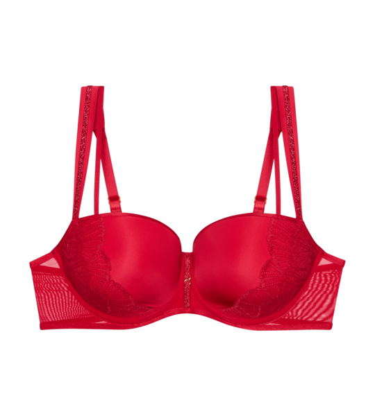 Koronka i opalizujący lureks dodają blasku. Lekkie usztywnienie i inteligentne miseczki typu spacer cup zapewniają pożądane uniesienie i wsparcie, szczególnie w przypadku większych rozmiarów biustu.