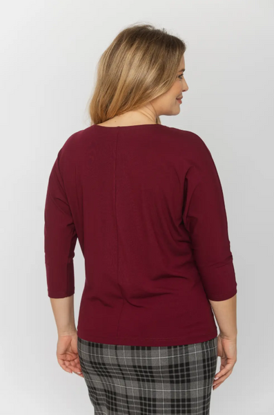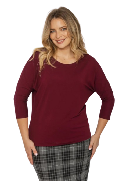 Bluzka dzianinowa z rękawem 7/8 – kolor czerwone wino