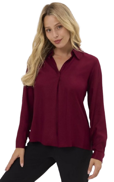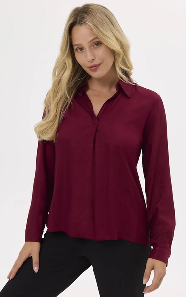 Bluzka damska Salko bordowa z kołnierzykiem i dekoltem w serek