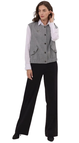 Spodnie można zestawić z żakietem z tej samej tkaniny, tworząc kompletny garnitur damski – idealny zarówno do pracy, jak i na wyjątkowe okazje.