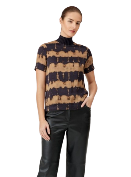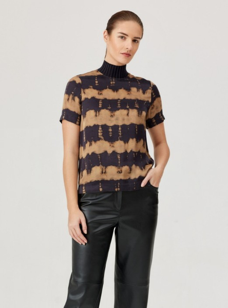 Bluzka w stylu tie-dye to nowoczesna propozycja dla kobiet ceniących luz i wygodę w modnym wydaniu. Model o prostym, lekko oversize’owym kroju, z krótkim rękawem oraz oryginalnym wykończeniem golfem ze ściągacza, sprawdzi się w wielu codziennych stylizacjach. Wykonana w całości z tencelu – tkaniny znanej ze swojej miękkości, przewiewności i przyjazności dla skóry.
